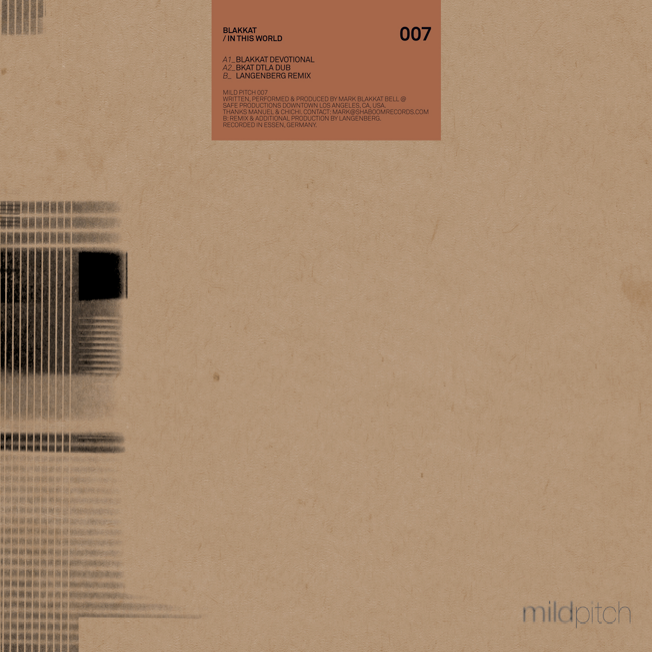 Auch auf Mild Pitch, dem Essener (Deep) House / (Dub) Techno-Label der dortigen Gralshüter des guten Geschmacks, DPlay, Manuel Tur und Langenberg, ist der Sommer eingekehrt und mit Mark “Blakkat” Bell als Schöpfer beziehungsweise künstlerischer Urheber der siebten 12″ ist es sogar ein sonnenreicher, kalifornischer. Heiss, feurig und farbintensiv ist dieser, und genau so verhält es sich mit den drei Tracks, welche Blakkat sowie Langenberg als Remixer auf der EP “In This World” bereithalten. Blakkat führt mit der “Blakkat Devotional”-Version das Label aus der Kellerfinsternis, dem dunkelheitstrunkenen Basement, heraus in das Sonnenhell des Tages. Mit diesem Song zeigt Mild Pitch Haut, ist sexy, aber dennoch tieffühlend genug, um nicht nur lediglich oberflächlich aufreizend zu wirken. Einen Kompromiss für den Schnellkonsum gibt es bei Mild Pitch auch dann nicht, wenn Vocals mit im Spiel sind – dafür sorgen schon dissonant klingende Synthesizer-Pads, die der Engländer wohl mit “eerie” umschreiben würde. Der “Bkat Dtla Dub” ist – mit einem Wort – schräg. Er entführt in eine facettenreiche Klangwelt mit vielen Überraschungseffekten. Ich will mich ja nicht zu weit aus dem Fenster hinauslehnen, aber…hier war jemand am Werk, der alle Finessen beherrscht, die man als Analogmaschinen- und Produktionsprogramm-Virtuose so draufhaben muss. Manuel Tur? Who knows. Bleibt noch der Remix von Langenberg. Er bringt “In This World” in ein ruhigeres Fahrwasser. Er setzt das Original in Szene mit u.a. üppigen Synthies und einem monoton metallischen Schlagklang, welcher in Kontrast steht zur angenehm rauchig-weichen Stimme Blakkats. Great Stuff!