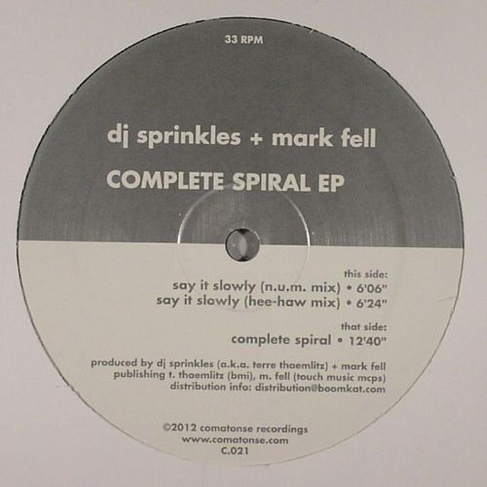 So auch “Complete Spiral”, eine EP, die in Zusammenarbeit mit dem britischen Konzeptmusiker Mark Fell entstanden ist. Der Titeltrack hält in der Musik, was die Worte versprechen. Sprinkles baut mit warm klingenden Basslines und entspannten Drum Pattern eine Zeitspirale auf. Sie hat keinen Anfag und kein Ende, so scheint es jedenfalls. Wer von ihr erfasst wird, den bringt sie zurück in die ersten Tage der House Musik. Es könnte aber auch die Zukunft sein. Denn klassischer House könnte auch in zwanzig, dreissig Jahren noch genauso klingen.