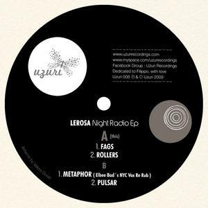 Los geht’s sogleich mit der von Anfang November an erhältlichen “Night Radio EP” von Leopoldo Rosa, den wir besser als Lerosa in Erinnerung haben. Sie erscheint auf Lerato Khatis (Lakuti, Südelectronic Parties in London) Label Uzuri. Die Verbindung Lerosa Uzuri kann gewissermassen als Startbeschleuniger für die musikalische Laufbahn sowohl des Produzenten Leopoldo Rosa als auch des Labels Uzuri gesehen werden. Mit Lerosas “Much Later EP” (http://www.discogs.com/Lerosa-Much-Later-EP/release/1129660) kann sich das soeben neu gegründete Imprint von Beginn an als qualitativ hochwertige Alternative positionieren, und der auf die grüne Insel ausgewanderte Römer findet seit dieser Zeit (endlich) die Beachtung, die ihm als Schöpfer musikalischer Perlen zusteht.