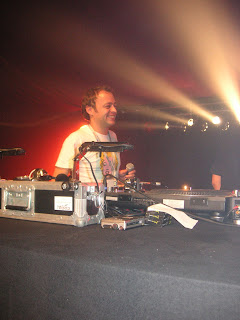Teils verspielt und detailverliebt, teils leicht und melodisch, mit einem Wort: sinnlich; teils flächig atmosphärisch, teils groovig treibende, dichte Beats und thicke Basslines, Rainer Trüby packt eklektisch-elektronisches Klangmaterial auf die beständig sich drehenden Plattenteller und erzeugt damit zauberhaft schöne Klänge, die alles andere als aufgesetzt und überladen wirken. Satt und sicher kommt der Sound aus der Anlage, ein wahrer Genuss! Aus der Tiefe des Raumes besehen, erweckt es den Eindruck, als ob Rainer Trüby als Person fast im Hintergrund bleibt, vornehm und zurückhaltend. Er scheint mit seinem “Instrument“, den Turntables, zu verwachsen. Mich ergreift dieser Sound, der im Zusammenspiel mit der Lichtgestaltung die Beengtheit des Spiegelzeltes zu sprengen vermag, Weite und Grösse sowie Höhen und Tiefen erzeugt. Neue Räume schafft.