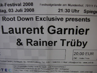 Während sich emsige Helferlein, der Staff, bereits daran machen, das DJ-Setup abzubauen, das Sicherheitspersonal bemüht ist, die Crowd ins Freie zu geleiten, umarmen sich die Gast-DJs des heutigen Abends in freundschaftlicher Verbundenheit, klopfen sich gegenseitig anerkennend auf die Schulter und lachen herzlich. Es sind die vom ersten Augenblick an, vom ersten eingespielten Takt bis zur letzten Sekunde des Nachhalls sympathisch wirkenden Musiker und Künstler, DJs und Produzenten Rainer Trüby (Compost Records, Freiburg) sowie Laurent Garnier (F.Communications, Frankreich). Beide sind sie weltbekannt und weltberühmt, geniessen einen exzellenten Ruf, werden enthusiastisch aufgenommen, gross gefeiert und verehrt. So auch in der Nacht von Donnerstag, den 03. Juli 2008, auf Freitag, den 04. Juli 2008 anlässlich der Root Down Exclusive auf dem Freiburger Zelt-Musik-Festival, kurz ZMF.